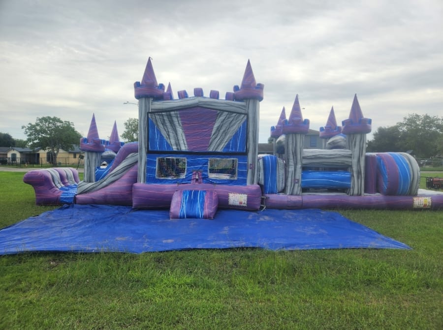 Our 46 foot Obstacle Course is an eye catching unit at any event. With one main entrance so they can race thru and a side entrance when you need a short cut that leads to the jumping area.